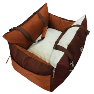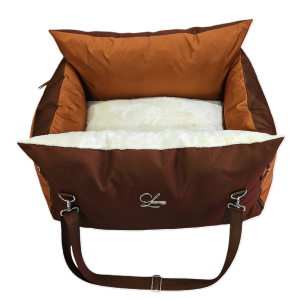 Designer Luxury Dog Car Seat, Sportive Model in Cognac, Large.
